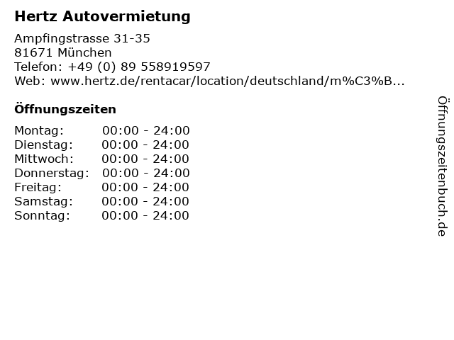 | Öffnungszeiten Hertz Autovermietung in München anzeigen | |