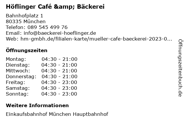 | Öffnungszeiten Höflinger Café & Bäckerei in München anzeigen | |