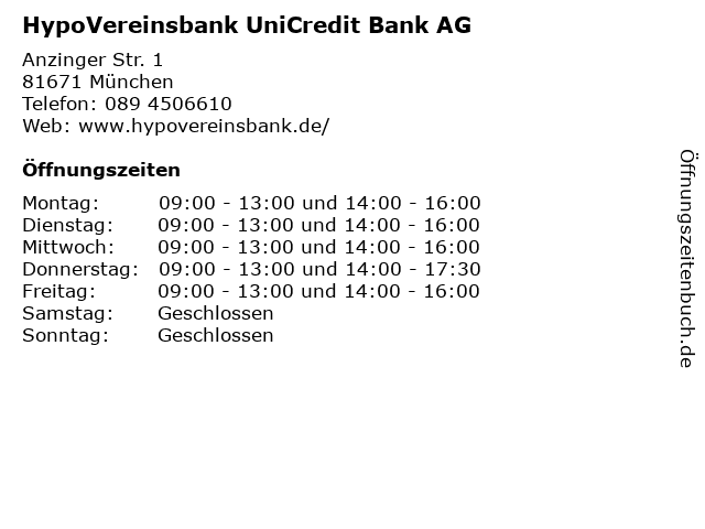 Öffnungszeiten HypoVereinsbank UniCredit Bank AG