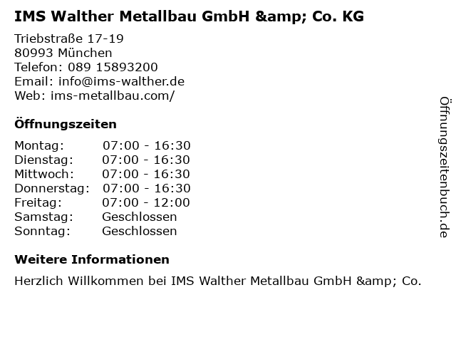 IMS Walther Metallbau GmbH & Co. KG in München: Telefonnummer, Öffnungszeiten und Adresse