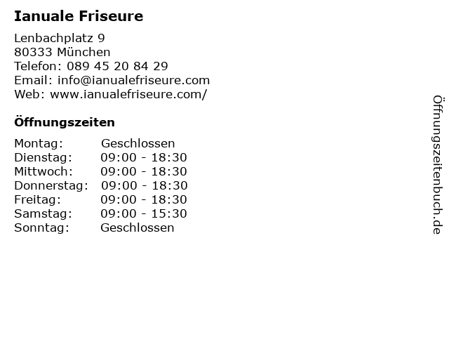 | Öffnungszeiten Ianuale Friseure in München anzeigen | |