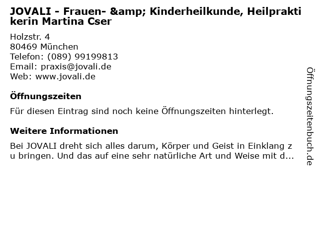 | JOVALI - Frauen- & Kinderheilkunde, Heilpraktikerin Martina Cser anrufen | |