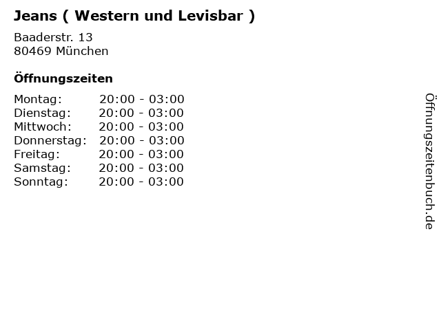 | Öffnungszeiten Jeans ( Western und Levisbar ) in München anzeigen | |