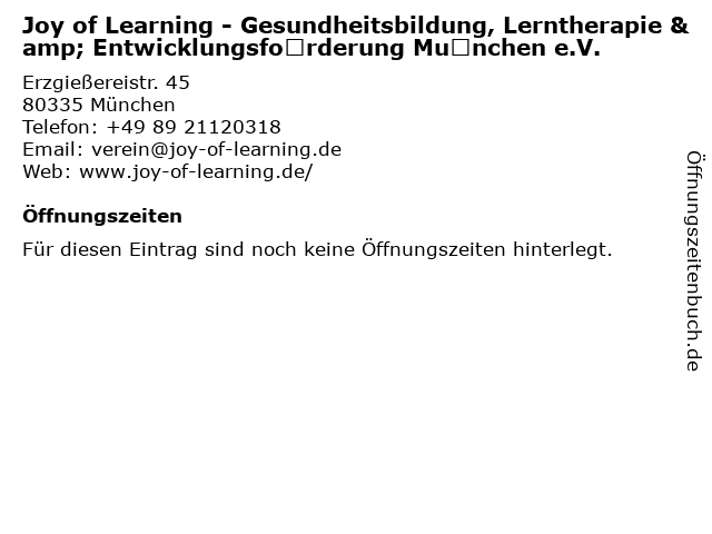 | Joy of Learning - Gesundheitsbildung, Lerntherapie & Entwicklungsförderung München e.V. anrufen | |