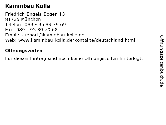 | Öffnungszeiten Kaminbau Kolla in München anzeigen | |