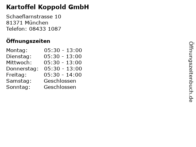 | Öffnungszeiten Kartoffel Koppold GmbH in München anzeigen | |