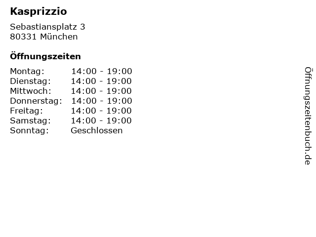 | Öffnungszeiten Kasprizzio in München anzeigen | |