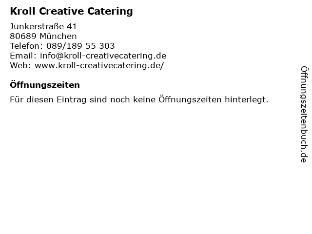 | Öffnungszeiten Kroll Creative Catering in München anzeigen | |