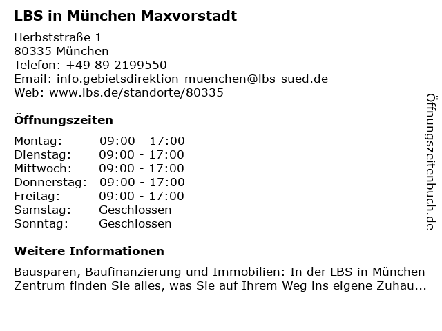 | Öffnungszeiten LBS in München Maxvorstadt in München anzeigen | |