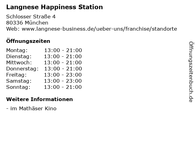 | Öffnungszeiten Langnese Happiness Station in München anzeigen | |