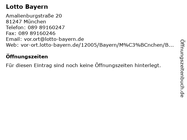 | Öffnungszeiten Lotto Bayern in München anzeigen | |