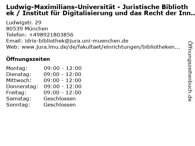 Branchen & Suchbegriffe zu Ludwig-Maximilians-Universität - Juristische Bibliothek / Institut für Digitalisierung und das Recht der Inneren Sicherheit (IDRIS):bibliothek, buch, buchscanner, digitalisierung, idris, inneren, institut, juristische, literaturen, ludwig, maximilians, recht, sicherheit, sprachen, universität |
