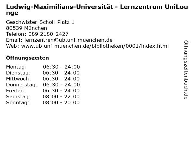 Branchen & Suchbegriffe zu Ludwig-Maximilians-Universität - Lernzentrum UniLounge:bibliothek, buch, buchscanner, lernzentrum, literaturen, ludwig, maximilians, sprachen, unilounge, universität |