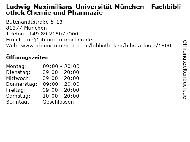 Branchen & Suchbegriffe zu Ludwig-Maximilians-Universität München - Fachbibliothek Chemie und Pharmazie:bibliothek, buch, buchscanner, chemie, fachbibliothek, literaturen, ludwig, maximilians, pharmazie, sprachen, universität |