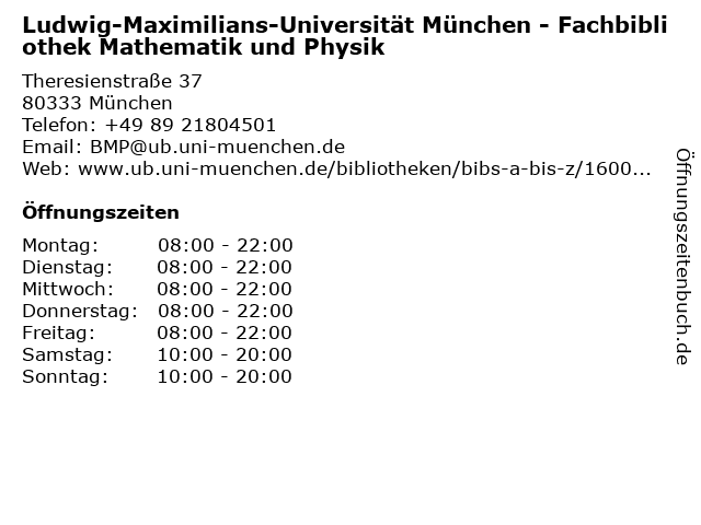 Branchen & Suchbegriffe zu Ludwig-Maximilians-Universität München - Fachbibliothek Mathematik und Physik:bibliothek, buch, buchscanner, fachbibliothek, literaturen, ludwig, mathematik, maximilians, physik, sprachen, universität |