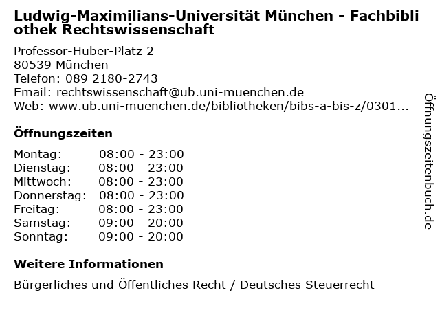 Branchen & Suchbegriffe zu Ludwig-Maximilians-Universität München - Fachbibliothek Rechtswissenschaft:bibliothek, buch, buchscanner, fachbibliothek, literaturen, ludwig, maximilians, rechtswissenschaft, sprachen, universität |
