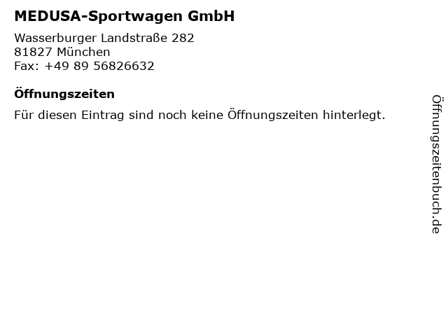 | Öffnungszeiten MEDUSA-Sportwagen GmbH in München anzeigen | |