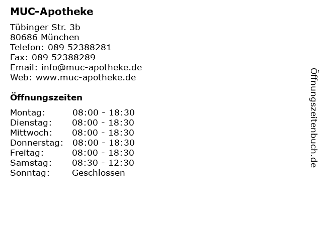 | Öffnungszeiten MUC-Apotheke in München anzeigen | |