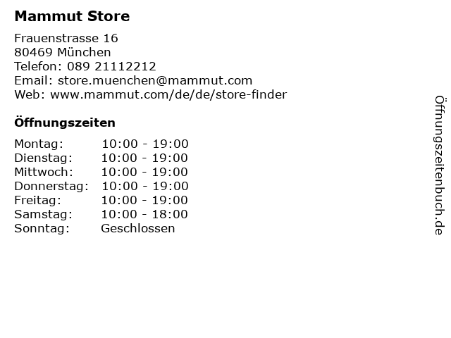 | Öffnungszeiten Mammut Store in München anzeigen | |