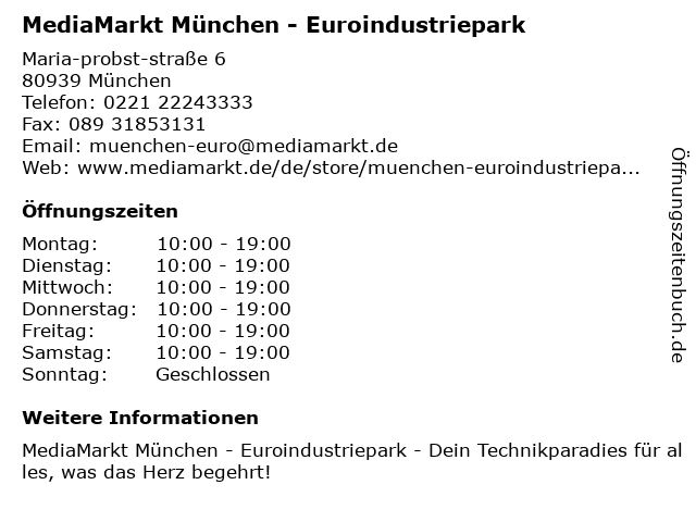 Branchen & Suchbegriffe zu MediaMarkt München - Euroindustriepark:anbieter für telekommunikationsgeräte, computergeschäft, euroindustriepark, geschäft für handyzubehör, geschäft für heimaudiosysteme, geschäft für videospiele, handyreparaturgeschäft, haushaltsgeräte, mediamarkt, mobiltelefongeschäft |