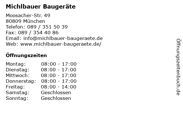 | Öffnungszeiten Michlbauer Baugeräte in München anzeigen | |