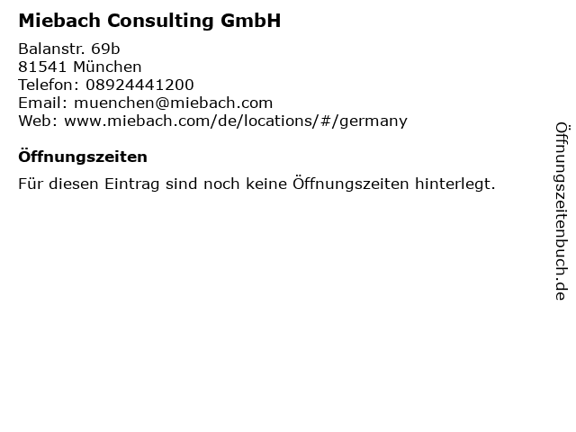 | Öffnungszeiten Miebach Consulting GmbH in München anzeigen | |