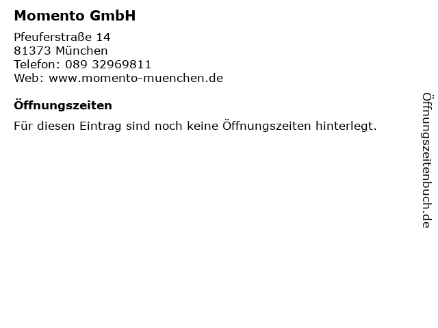 | Öffnungszeiten Momento GmbH in München anzeigen | |