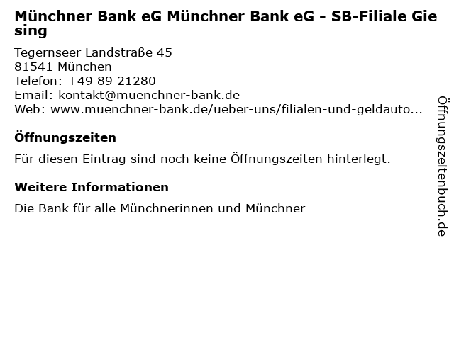 | Münchner Bank eG Münchner Bank eG - SB-Filiale Giesing anrufen | |