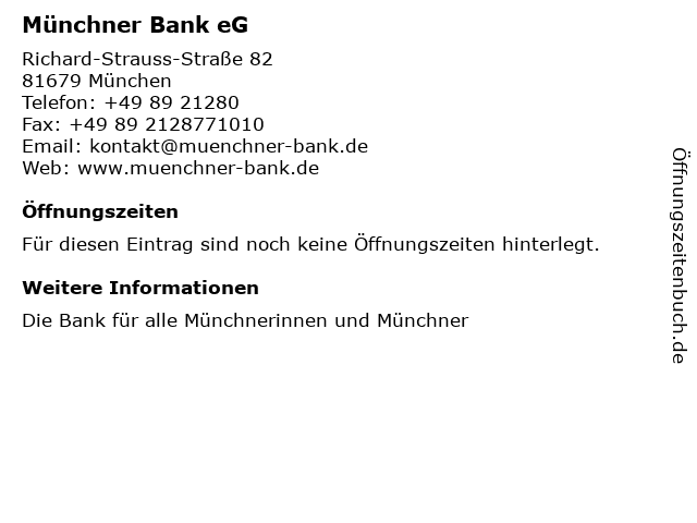 | Öffnungszeiten Münchner Bank eG in München anzeigen | |