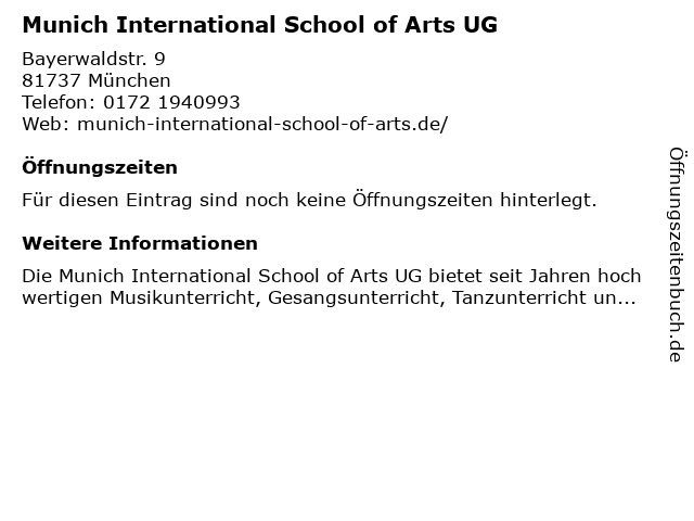 | Munich International School of Arts UG anrufen | |