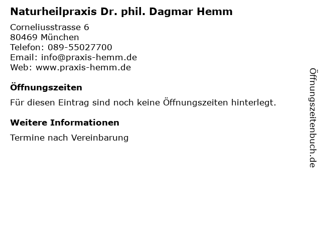 | Naturheilpraxis Dr. phil. Dagmar Hemm anrufen | |