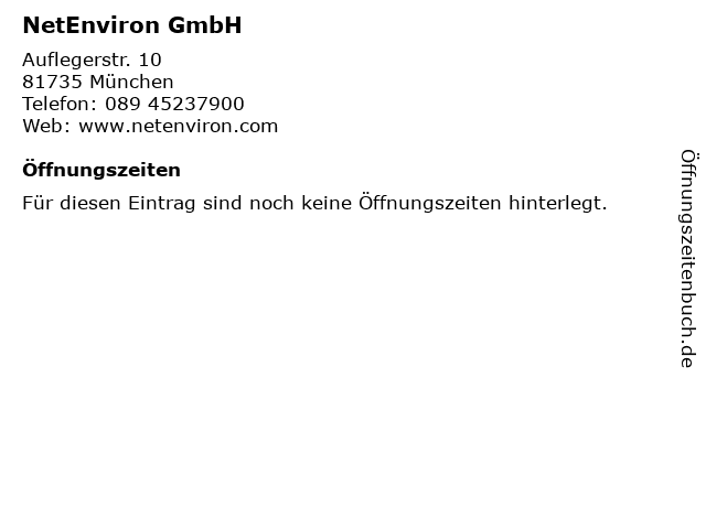 | Öffnungszeiten NetEnviron GmbH in München anzeigen | |