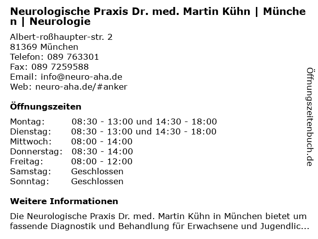 Branchen & Suchbegriffe zu Neurologische Praxis Dr. med. Martin Kühn | München | Neurologie:dr., kühn, martin, med., neurologie, neurologische, neuropsychiatrie, neuroradiologie, praxis |