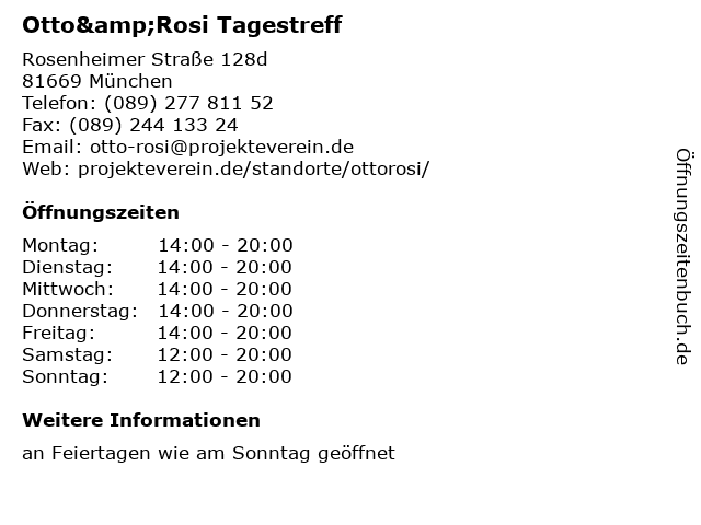 | Öffnungszeiten Otto&Rosi Tagestreff in München anzeigen | |