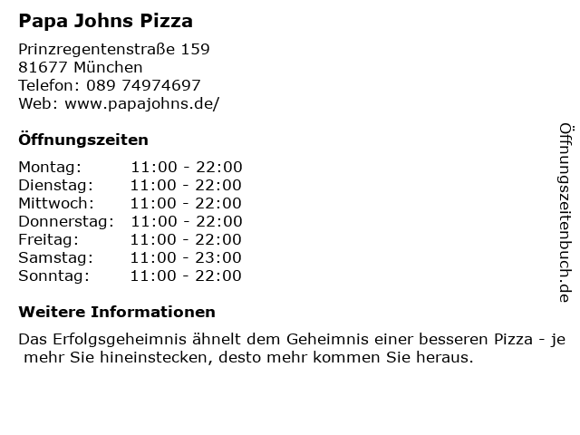 Öffnungszeiten Papa Johns Pizza in München anzeigen | |