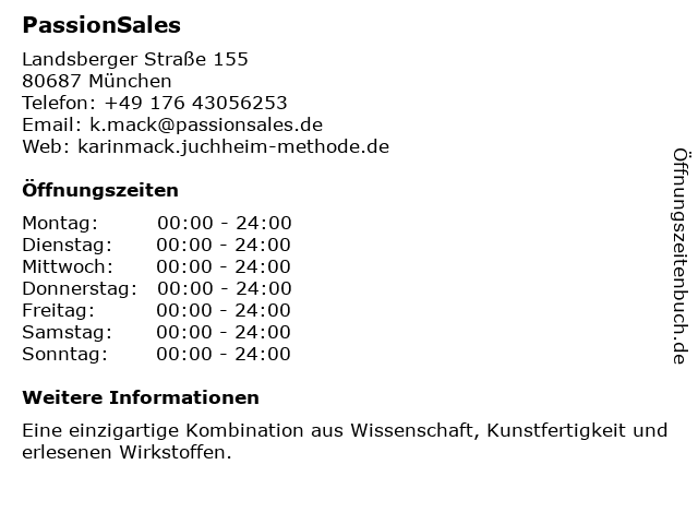 | Öffnungszeiten PassionSales in München anzeigen | |