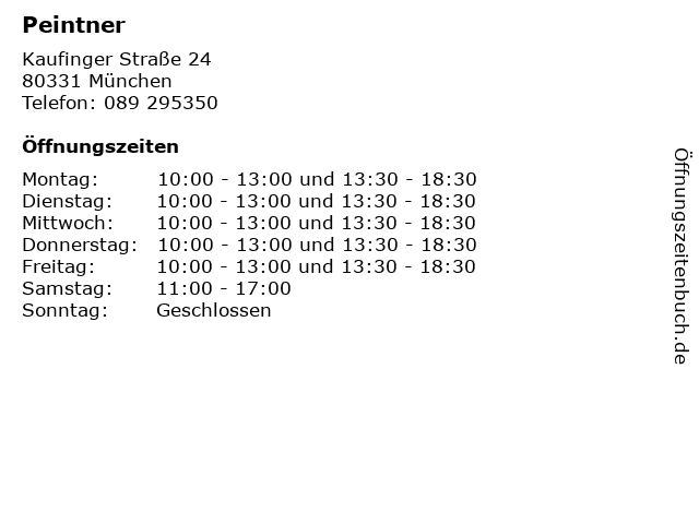 | Öffnungszeiten Peintner in München anzeigen | |
