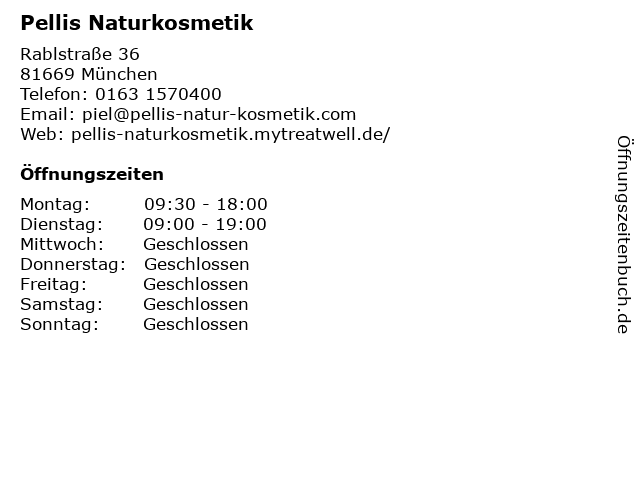 | Öffnungszeiten Pellis Naturkosmetik in München anzeigen | |