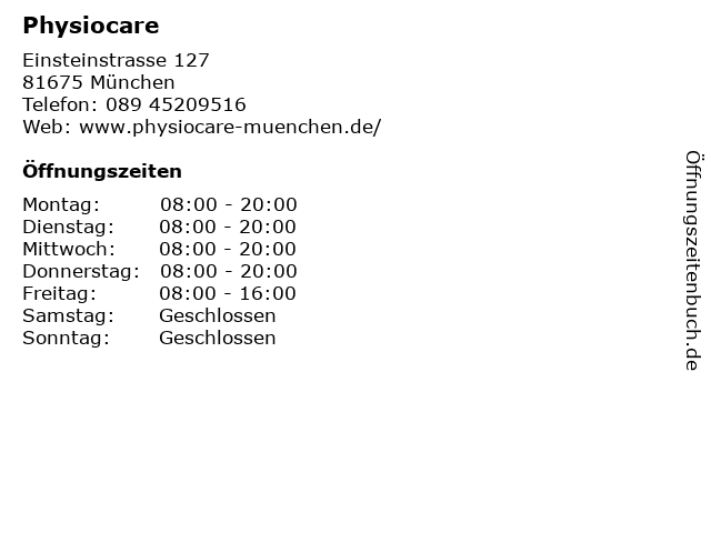 Telefonnummer Physiocare in München (089 45209516) anrufen | |