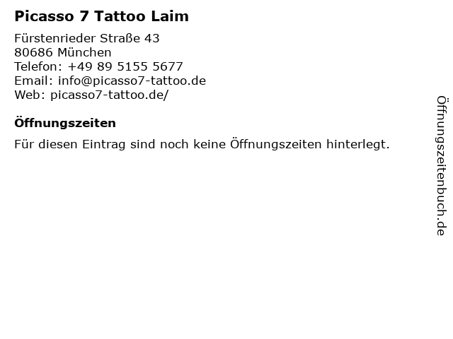 Öffnungszeiten Picasso 7 Tattoo Laim in München anzeigen | |