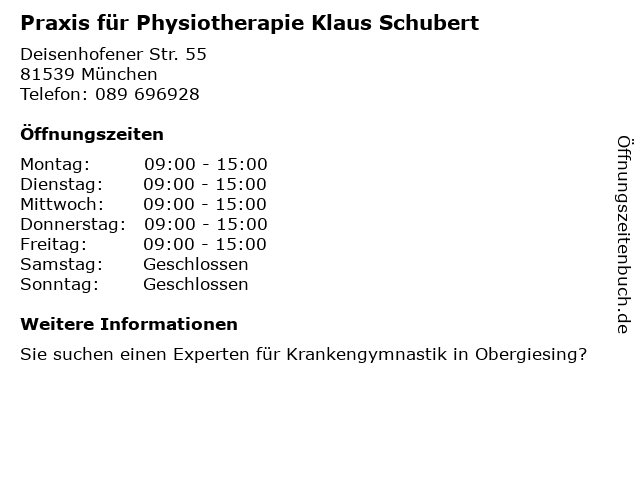 Branchen & Suchbegriffe zu Praxis für Physiotherapie Klaus Schubert:klaus, physiotherapie, praxis, schubert |