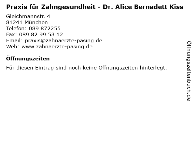 | Praxis für Zahngesundheit - Dr. Alice Bernadett Kiss anrufen | |