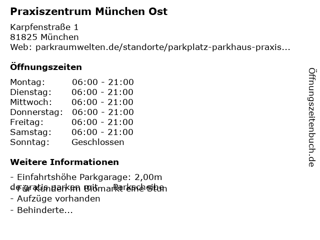 | Öffnungszeiten Praxiszentrum München Ost in München anzeigen | |