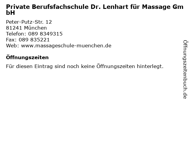 | Private Berufsfachschule Dr. Lenhart für Massage GmbH anrufen | |
