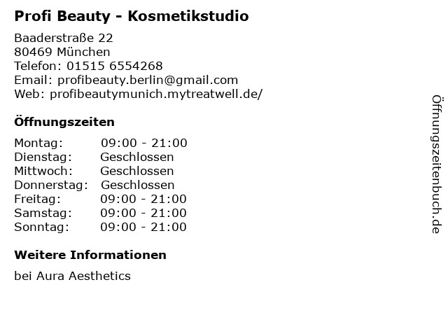 1 Schönheit & Harmonie Inh. Tatjana Schramm Kosmetikstudio (Entfernung: 0,00 km) Baaderstr. 22, 80469 München 4 Kosmetikstudio Beauty Up Inh. Raphaela Villgradter (Entfernung: 0,51 km) Sebastiansplatz 7, 80331 München 6 |