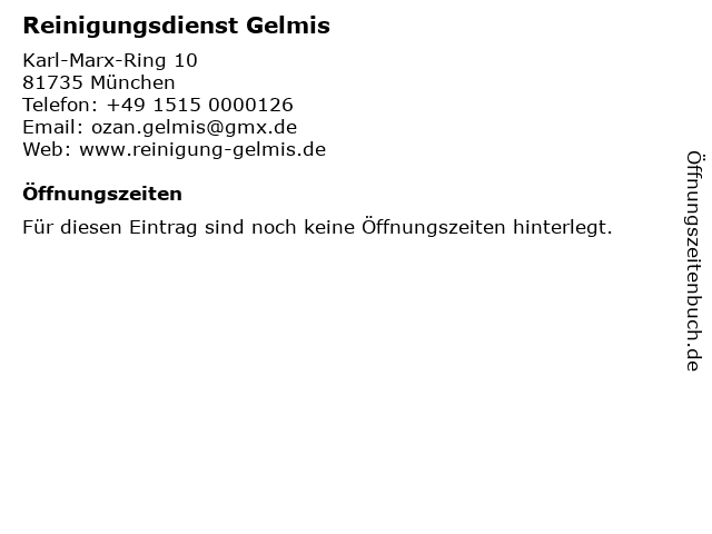 | Öffnungszeiten Reinigungsdienst Gelmis in München anzeigen | |