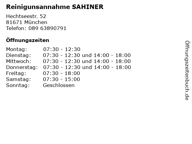 | Öffnungszeiten Reinigunsannahme SAHINER in München anzeigen | |