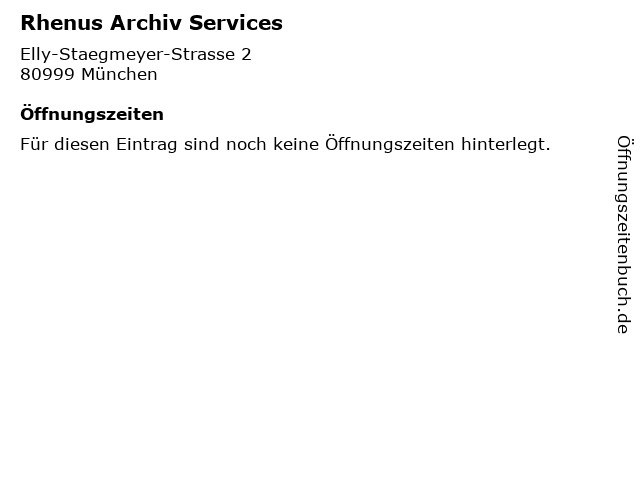 | Öffnungszeiten Rhenus Archiv Services in München anzeigen | |