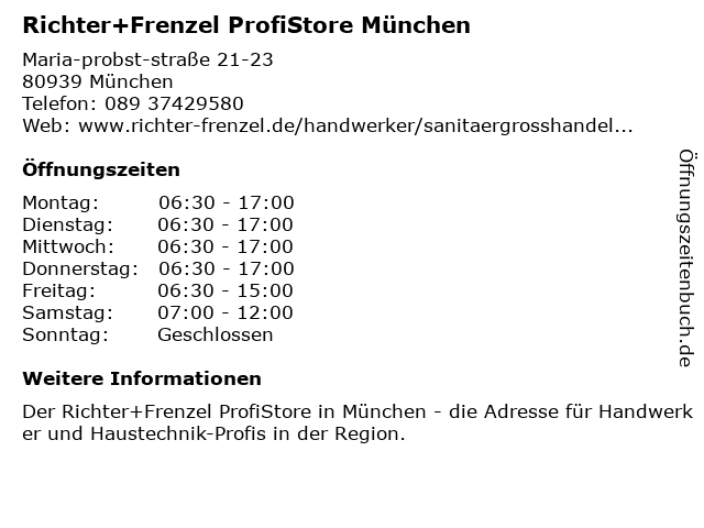 5 Richter+Frenzel ProfiStore Aschheim (Entfernung: 7,94 km) Karl-hammerschmidt-straße 48, 85609 Aschheim 6 Richter+Frenzel - Niederlassung (Entfernung: 7,94 km) Karl-Hammerschmidt-Straße 51, 85609 Aschheim-Dornach |