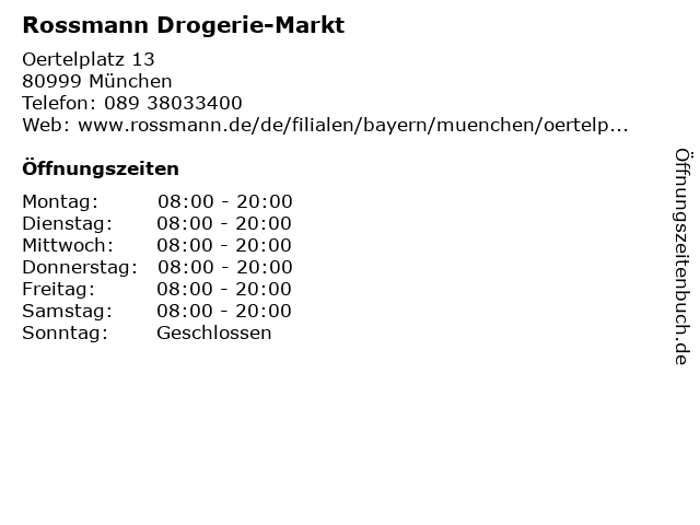 | Öffnungszeiten Rossmann Drogerie-Markt in München anzeigen | |